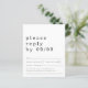 Budget Typography Black White Wedding RSVP. A budget friendly PAPER SMALLER 4.5” x 5.6” alternative to card. Envelopes are an optional extra. The header is large below in stylish lowercase with the details at the bottom. Easily personalise the text to your own details.