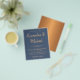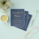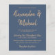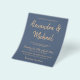 Elegant trendy typography low budget affordable wedding invitation in dark midnight blue with rose gold hand lettering featuring big bride's and groom's names calligraphy script. On the backside, there is a faux metal copper foil. ++++++++++++++++++++++ ENVELOPES NOT INCLUDED! +++++++++++++ Please note that the navy background color on front side is editable. You can change it after selecting CUSTOMIZE further option. ------- The invitation is suitable for any season - spring, summer, autumn, winter - indoor wedding reception.