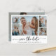 Budget Elegant Modern Black and White Minimalist Calligraphy Script 5 Photo Collage Wedding Save The Date Thin Cards. This romantic delicate design perfect for modern wedding. Features 5 (five) grid photo collage, a whimsical calligraphy in hand lettered style swash tail font. Easy to personalize it with your wedding details and pictures. Low budget cheap affordable cards.