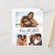 Budget Minimalist Elegant Calligraphy Script 3 Photo Collage Wedding Save The Date Cards in Black and White. This beautifully delicate design is tailored for contemporary weddings, exuding a romantic charm that captivates. Boasting a graceful 3 photo grid collage and whimsical calligraphy in a hand-lettered swash tail font, these cards are a testament to modern elegance. Effortlessly personalize them with your cherished wedding details and pictures, offering an affordable yet sophisticated touch to announce your special day.