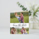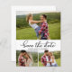 Minimalist Budget Elegant Calligraphy Script 3 Photo Collage Wedding Save The Date Cards in Black and White. This beautifully delicate design is tailored for contemporary weddings, exuding a romantic charm that captivates. Boasting a graceful 3 photo grid collage and whimsical calligraphy in a hand-lettered swash tail font, these cards are a testament to modern elegance. Effortlessly personalize them with your cherished wedding details and pictures, offering an affordable yet sophisticated touch to announce your special day.