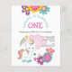 A budget price SMALLER 4.5” x 5.6” alternative. Available in a SEMI-GLOSS 110 lb CARD STOCK which is the default option (thicker for invitations), OR a SATIN FINISH 80 lb THINNER PAPER STOCK (ideal for enclosures). Envelopes are an optional extra and are slightly larger than the card size. For when you can't get together to celebrate in person, an online party is the next best thing. Here is a cute unicorn themed design for your little girl's Virtual First Birthday Party, along with colorful simplistic florals in shades of pink, teal and yellow. All of the text can be easily personalised to your own details. On the back, the background is white with teal stars. You can make further changes if you wish via the customise further option, to font styles and colors, and also the background colors.