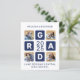 Invite friends and family to your graduation with these fun and modern photo collage graduation invitations cards. These budget graduation invitation postcards need to be mailed as oversized postcards so may incur standard postage fees but they don't need an envelope or a return address label. Customize with 4 of your favorite senior or college photos, and personalize with graduating year, name, high school or college and graduation party details. These unique trendy and stylish graduation cards will make a lasting impression with family, friends, and your fellow classmates! COPYRIGHT © 2020 Judy Burrows, Black Dog Art - All Rights Reserved. Budget Unique Grad Navy Blue 4 Photo Graduation Invitation Postcard