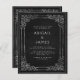 This elegant wedding invitation features an ornate vintage silver frame on a distressed off-black background in imitation of an antique book cover. Customize the silver gray text with your names and wedding details. The frame design is repeated on the back of the card.