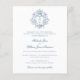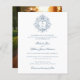 This budget-friendly wedding invitation features a sophisticated design with a vintage-inspired crest adorned with intricate botanical details and a customizable monogram, offering timeless elegance in a compact format. The refined combination of classic serif and flowing script fonts conveys a sense of formality and romance, while the soft blue color palette enhances the graceful and traditional aesthetic. The back provides space for a personal touch with a photo of the couple, adding warmth and charm to this smaller, more economical option. Perfect for couples seeking affordable elegance without compromising on style, this invitation beautifully balances refinement and practicality.