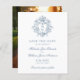 Announce your special day in style with this elegant budget-friendly save the date card featuring a vintage-inspired crest design adorned with intricate floral details and a customizable monogram. The soft blue color palette and timeless serif and script fonts create a refined and sophisticated look, perfect for setting the tone for a formal wedding celebration. The reverse side showcases a full-bleed photo of your choice with an easily editable "Save the Date" script and date overlay, adding a personal and romantic touch. The smaller, more affordable size offers a stylish yet economical way to share your wedding date with loved ones. This design is ideal for couples seeking a classic and romantic aesthetic to make a memorable first impression on their guests. These budget cards are only available as printed cards. The standard 5 x 7 cards are also available as instant digital downloads.