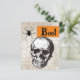 Send spooky Halloween greetings with this vintage-inspired flat card featuring a bold skull illustration, creepy spider, and distressed “Boo!” text layered over an antique ephemera background. Personalize with your own message for a unique and memorable seasonal card.