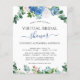 Budget Spring or Summer Eucalyptus and Blue & Blush Pink Floral Rose Flowers Botanical Watercolor Greenery Wreath Wedding Virtual Bridal Shower Invitations on white background - includes modern beautiful and elegant script typography with modern botanical leaves and greenery for the special Bride to Be celebration.