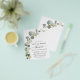 Budget Eucalyptus Greenery Succulent Botanical Watercolor Spring Wedding Virtual Bridal Shower Invitations on white background - includes beautiful and elegant script typography with modern botanical leaves and greenery for the special Bride to Be celebration.