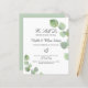A white background decorated with eucalyptus greenery, sprigs. Personalize and your name and ceremony details.