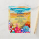 Colorful beach umbrellas in the sand, sunbathers and a surfer in the ocean waves, these affordable birthday party invitations are printed on your choice of 3 paper sizes of bright white semi-gloss 110 lbs cardstock. (We don't advise using the satin 80 lb paper as it is thin and more like a magazine page, not invitation paper.) **White envelopes are optional and can be added to your order at an additional cost. Be sure to double check your order before adding it to your cart as what you see on the screen is what will be printed. The Live Design Service can help you with the layout of your design if needed. MATCHING items in our store.
