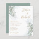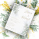 This is a modern and elegant 'the wedding of' calligraphy wedding invitation in gold on a white background with the addition of sage green eucalyptus and coordinating botanical elements. Easy to customize the text to create something really unique.