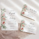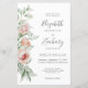 The left-hand edge of this romantic wedding invitation features watercolor floral bouquet of peach and blush flowers and greenery. The customizable text combines handwriting, copperplate and italic fonts in charcoal gray on a white background. The reverse side features a coordinating solid color.