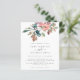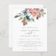 Watercolor Florals Wedding Invitation. A budget price SMALLER 4.5” x 5.6” alternative. Available in a SEMI-GLOSS 110 lb CARD STOCK which is the default option (thicker for invitations), OR a SATIN FINISH 80 lb THINNER PAPER STOCK (ideal for enclosures). Envelopes are an optional extra and are slightly larger than the card size. Modern artsy pink and teal botanicals decorating the top and elegant text centered below. Easily personalise the text to your own details.