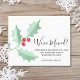 It is decorated with watercolor green holly and red berries.