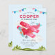 Cute Watercolor Aviation Sky Red Airplane Kids Birthday Invitation
