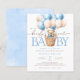 Budget we can bearly wait teddy bear blue hot air balloon baby shower invitation.