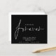 A value for money BUDGET alternative on a smaller size 4.5 x 5.6” semi-gloss 110lbs weight, which is of similar thickness to a postcard (however is not suitable to use as a postcard.). PLEASE NOTE there is ONE invite per sheet. Budget We Decided on Forever Black Save The Date. White typography on classic black design to invite your guests to save your date. We Decided on Forever which is in a stylish set script is in the center. The rest of the text you can easily personalise. Text and background colors can be changed if you wish to better suit your wedding theme via the customise further option.