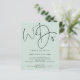 There are two paper options to choose from for this size (4.5 x 5.6”) in the Budget range. For this product, I would recommend the semi-gloss which is a 110 gsm card stock, similar in thickness to a postcard. The Satin option is a much thinner paper 80gsm. The default is set to semi-gloss. PLEASE NOTE there is ONE invite per sheet. Script We Do Mint QR Code Wedding Invitation. Add your QR code to your wedding website on the back makes this a convenient option for your guests to RSVP and see all the details without the need for separate RSVP and details cards. A simple yet elegant design on a background of pastel mint green. Stylish set script We Do takes center stage at the top.The rest of the text you can easily personalise. Text and background colors can be changed if you wish to better suit your wedding theme via the customise further option.
