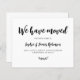 Budget Minimalist Simple „We've Moved” Whimsical Typography New Home Moving Announcement Card. Let your friends and family know your new address using these minimalist card elegant pretty handwritten Calligraphy font script „We Have Moved” text on front and the back side „Please keep in touch!” text in black and white. Easy to customize with your own details.