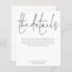 PLEASE NOTE there is ONE per sheet. Available in a SEMI-GLOSS 110 lb CARD STOCK which is the default option (thicker for invitations, similar in thickness to a postcard), OR a SATIN FINISH 80 lb THIN PAPER STOCK (more suited to thin enclosures). Let your guests know details such as directions and accommodation information for your wedding when you send their invitations. This elegant design has set stylish large typography for the heading The Details and the rest of the text can be easily personalised to your words. You can choose any colors of your choice for the text and background colors on both sides via the customise further option.