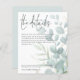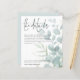 Wedding Details Eucalyptus Script Enclosure. A budget price paper alternative, convenient for enclosures. Let your guests know details such as directions and accommodation information for your wedding when you send their invitations. This elegant design has set stylish large typography for the heading The Details and the rest of the text can be easily personalised to your words. Beautiful eucalyptus leaves in soft teal blue decorate the right hand side and are gradually tinted into the background and some of the text is overlaid on top. A coordinating powder blue background is on the back which can be changed to a different color if you wish via the customise further option.