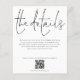A value for money BUDGET alternative on a smaller size 4.5 x 5.6” semi-gloss 110lbs weight, which is of similar thickness to a postcard (however is not suitable to use as a postcard.). PLEASE NOTE there is ONE invite per sheet. Budget Wedding Details QR Code Script Enclosure. Let your guests know details such as directions and accommodation information for your wedding when you send their invitations. This elegant design has set stylish large typography for the heading The Details and the rest of the text can be easily personalised to your words along with your website QR code. You can choose any colors of your choice for the text and background colors on both sides via the customise further option. Your QR code will be automatically generated to update the sample code in the design, when you simply change the sample URL in the template with your own wedding website URL.