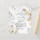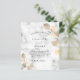 Marble print as background decorated with golden eucalyptus sprigs. Personalize and your name and ceremony details.
