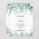 A white background with watercolored eucalyptus greenery and woodland, forest ferns. Personalize and add your names and the details.