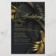 Low Budget wedding - a Stunning wedding invitation featuring black and gold tropical ferns -