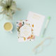 This modern wedding card has a warm, minimalist design. The front features a lively script text above your first names and date. On the back, we've set the background as transparent, so that the color of the paper will serve as the base color. You can choose a color for the background, if you prefer. All aspects of this design can be edited (font, text size, or floral accents moved/removed) to fit your needs. Please contact me if you need help with this design.