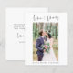 Budget Wedding Thank You Cards that have a photo on the front and back. The Thank you cards contain a modern hand lettered cursive script typography that are elegant, simple and modern to use after you minimalist simple wedding day celebration.
