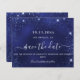 A modern and elegant Save the Date for a wedding. A navy blue background decorated with faux silver glitter dust. Personalize and add a date and names. The text: Save the Date is written with a large trendy hand lettered style script.