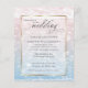 NEW! Affordable Budget Wedding | Stunning shimmering sparkly Ocean waters glistening in the setting sun - in pale shades of dusty rose pink and dusty blue - text appears on a sheer white sparkling gold edged frame that shows the design but allows the text to easily be read. Accented with beautiful elegant handwritten calligraphy. Easy to personalize wedding template.