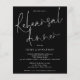 A budget price SMALLER 4.5” x 5.6” alternative. Available in a SEMI-GLOSS 110 lb CARD STOCK which is the default option (thicker for invitations), OR a SATIN FINISH 80 lb THINNER PAPER STOCK (ideal for enclosures). Envelopes are an optional extra and are slightly larger than the card size. This modern design in classic black and white design has elegant informal set script for Rehearsal Dinner and the rest of the typography you can easily personalise. You can also change text and background colors on either side if you wish via the Customize Further option.