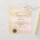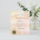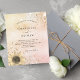 A modern, elegant and wedding invitation. A rose gold and blush pink faux metallic looking background decorated with faux gold and silver glitter dust and a rustic sunflower. Personalize and add your names and party details. Black colored letters.