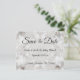 Budget Save The Date wedding announcement flat card. Custom simple silver gray white gold, elegant printed design. Black script can be personalized. Image copyright Marg Seregelyi Photography.