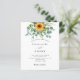 On the front: A white background decorated with sunflowers, eucalyptus greenery. The blue color is uneven. Personalize and add your names and party details.
