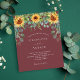A wine red, maroon colored background decorated with sunflowers, eucalyptus greenery. Personalize and add your names and party details.