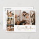 Budget Elegant, Minimalist Gold and White Hand Written Script Wedding Grid 4 Photo Collage Thank You Postcard. Modern wedding card template featuring four (4) photo on the front and one photo on the reverse side. With the text "Love and thanks" in a cursive hand lettered typography heart script swash tail font. Personalize your name and thank you message. If You need help or matching item, please contact to me!