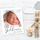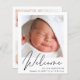 A budget-friendly gender-neutral baby birth announcement. The front features your newborn's photo, full name, arrival date and birth stats, and "Welcome" written in a stylish script. On the reverse side, you can add three additional photos and parent and sibling names, and a thank you, visitation or other message.