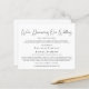 Budget wedding announcement option if circumstances require that you downsize your wedding. This modern and simple, yet elegant, black and white smaller downsized wedding announcement features "We're Downsizing Our Wedding" written in a stylish pretty calligraphy and you can easily personalize the wedding downsize message and add any virtual wedding events, future celebrations and wedding website information. Also available on other paper products, such as a 5X7 flat card announcement or postcard.