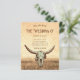 Budget western country vintage beige brown antique cowboy style scenery background. Wedding budget flat cards. Rustic bull cow skull invitations. Cute farmhouse design. Typography can be personalized. Old wild west, unique. Cool, trendy farm animal. Image copyright Marg Seregelyi Photography.