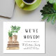 Budget-friendly boho chic new home / change of address moving announcement featuring watercolors of books and house plants and minimal modern typography. On the front, personalize with your family name, the "We've Moved" text and your new address. On the reverse side you can personalize your announcement in more detail and include a telephone number and email if desired.