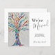 This Budget Moving Announcement Card features a mosaic Family Tree and stylish typography.
