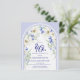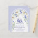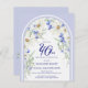 Elegant 40th Birthday Party invitation template features a Boho floral arch made from white daisies and blue wildflowers. This item is part of the Boho Arch Blue and White Floral Collection.