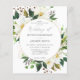 Save money on formal invitations with this smaller invitation that has an option for envelopes. Get your guests ready for the amazing wedding with this White Floral & Greenery wedding invitation.