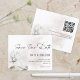 A value for money BUDGET alternative on a smaller size 4.5 x 5.6” semi-gloss 110lbs weight, which is of similar thickness to a postcard (however is not suitable to use as a postcard.). PLEASE NOTE there is ONE per sheet. Budget White Florals Wedding QR Code Save Our Date. A minimalist floral design in soft white and gray to the bottom left corner and a pale watercolor wash in subtle frosty blue and pink in the background. Save Our Date is in a modern set script and easily personalise the rest of the text. Add your QR code to your wedding website on the back by replacing the QR code on the sample. Or delete this if not required. You can create QR codes for free online. Simply search “QR code creator” and lots of options come up to create for free.