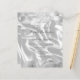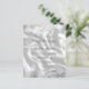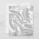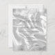 The top and bottom edges of this elegant modern wedding invitation feature a white and gray watercolor agate border trimmed with faux silver glitter. The customizable text combines handwriting, sans serif and italic fonts in charcoal gray on a background image of white silk. The reverse side features a matching agate and silk design.