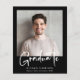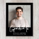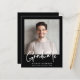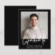 Celebrate a major milestone with this modern budget-friendly photo graduation announcement featuring a clean black background and “Graduate” in a bold white handwritten script. It's an ideal choice for college and university graduates, as well as high school seniors. The clear typography highlights the graduate’s name, school, and class year while keeping the focus on the photo.